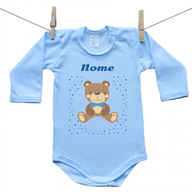 Body blu a maniche lunghe con orsacchiotto per bimbo