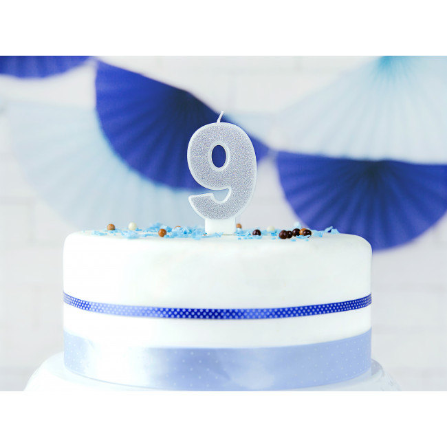 Date alla torta di compleanno un tocco di brillantezza perfetta con questa candela argentata e scintillante numero 9!