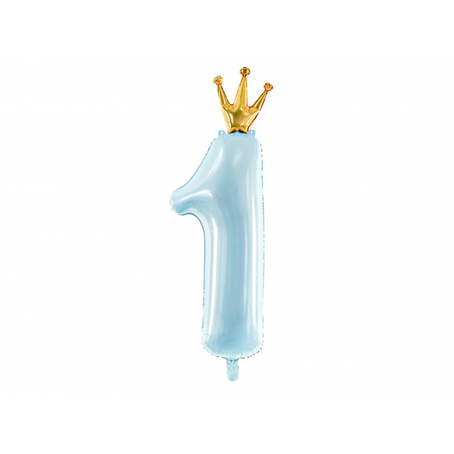 Palloncino Foil Numero 1, 37x100cm, Celeste con Corona