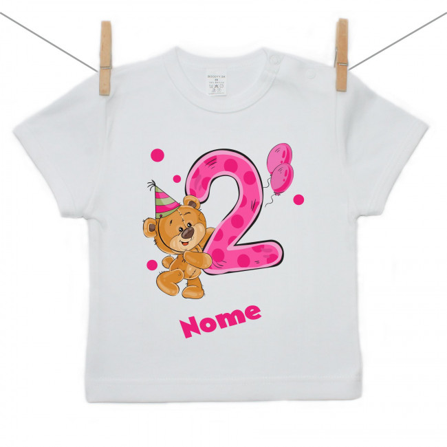 Maglietta a maniche corte Ho 2 anni con orsacchiotto per bimba