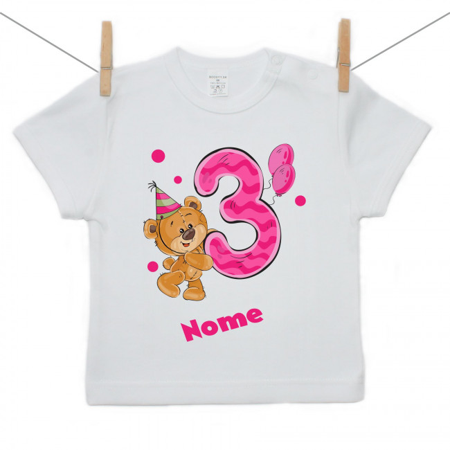 Maglietta a maniche corte Ho 3 anni con orsacchiotto per bimba
