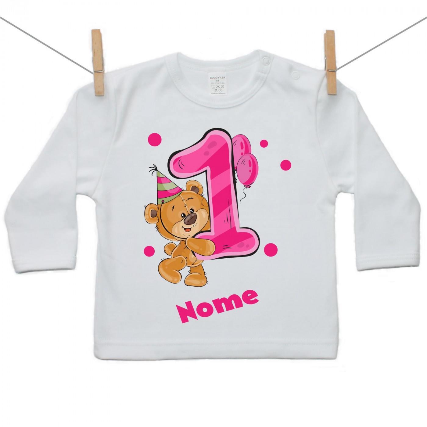 Maglietta a maniche lunghe Ho 1 anno con orsacchiotto per bimba