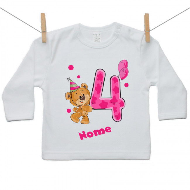 Maglietta a maniche lunghe Ho 4 anni con orsacchiotto per bimba