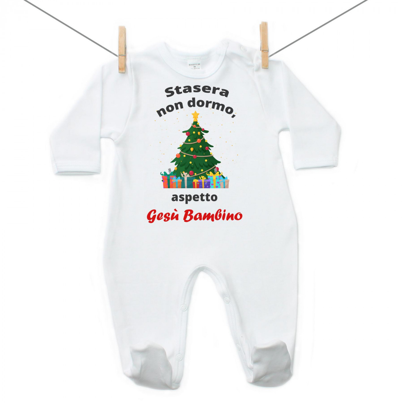 Tutina in cotone per bambini "Stasera non dormo, aspetto Gesù Bambino" ❤️