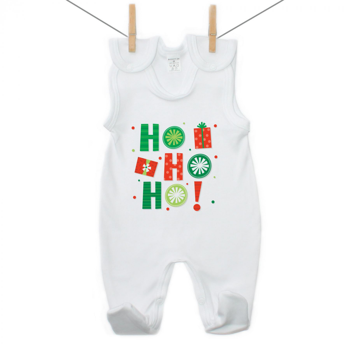 La chiusura sulle spalle e tra le gambe facilita la vestizione e il cambio. Disponibile nelle taglie da 50 a 86 cm.